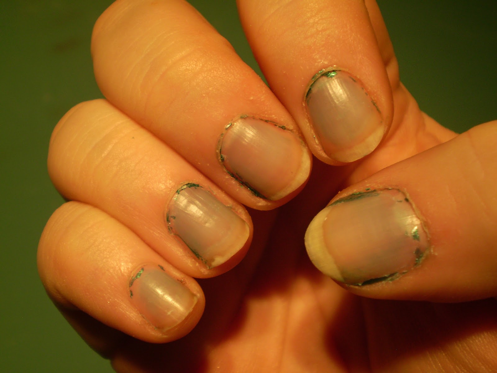 My crushed glass manicure from yesterday? Well here's my nails after removing the paint: