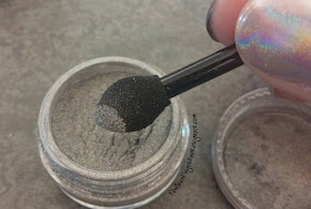 Its really very easy to use. Just paint with the top coat, cure it under a light, use the eyeshadow applicator to pick up just the tiniest bit of powder, and buff it into your cured polish. That's it. All there is to it.